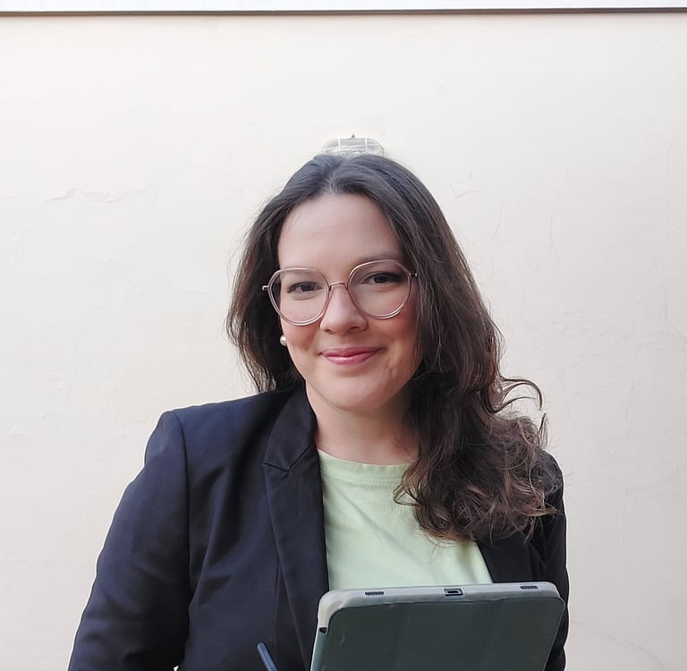 Ela também é pesquisadora, tradutora e apaixonada por literatura, tendo Pós-Graduação em Metodologias de Ensino do Alemão como Língua Estrangeira pelo Instituto Superior de Ensino Ivoti - RS e atualmente está retomando suas pesquisas acadêmicas com o mestrado em Ensino e Aprendizagem do Alemão como Língua Estrangeira, em Berlim. O primeiro contato dela com o idioma alemão foi em 2012, durante um intercâmbio escolar na Turíngia, onde aprendeu o idioma.